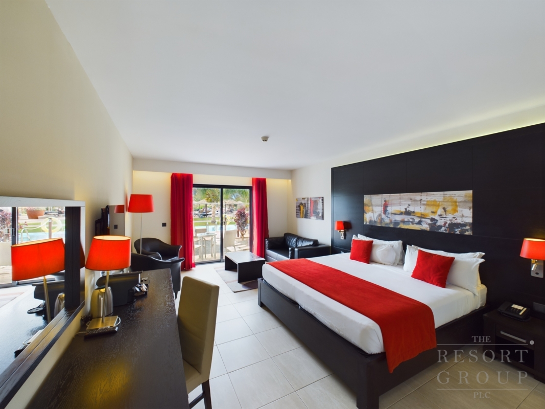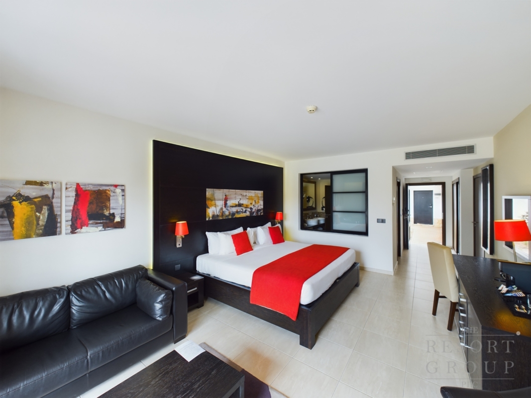 What a fantastic opportunity to purchase this wonderful ground floor swim up room situated in the very popular beach front Melia Llana Beach resort. This is a freehold property and ideal to enjoy top class luxury holidays, or rental investment through the Hotel rental scheme. walk out of your terrace straight into a warm bathing area. The location setting on one of the most beautiful beaches with turquoise sea, beach bars and restaurants, there is so much to offer with this investment. On site there are 2 pools plus the VIP pool and lounge. Multiple Restaurant’s, bars, spar, beauticians, local shop and nightly entertainment. 24hr reception and security .